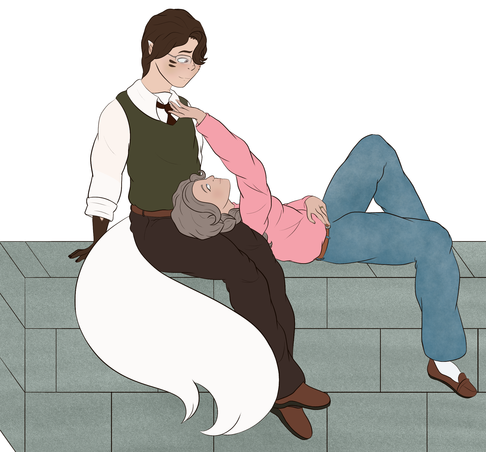 Little domestic thing, also showing the fur along Chester’s arms and legs. I have another piece with these two finished, but not sure how/where to post it since its a little on the nsfw side.