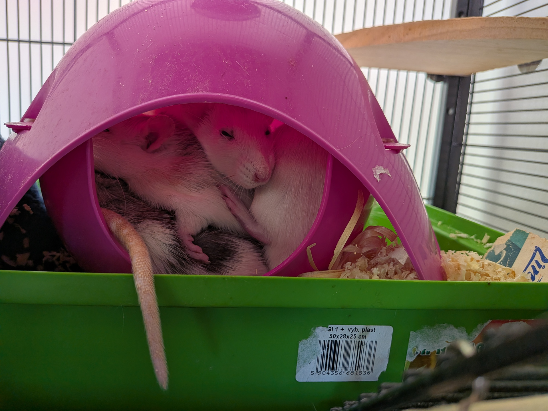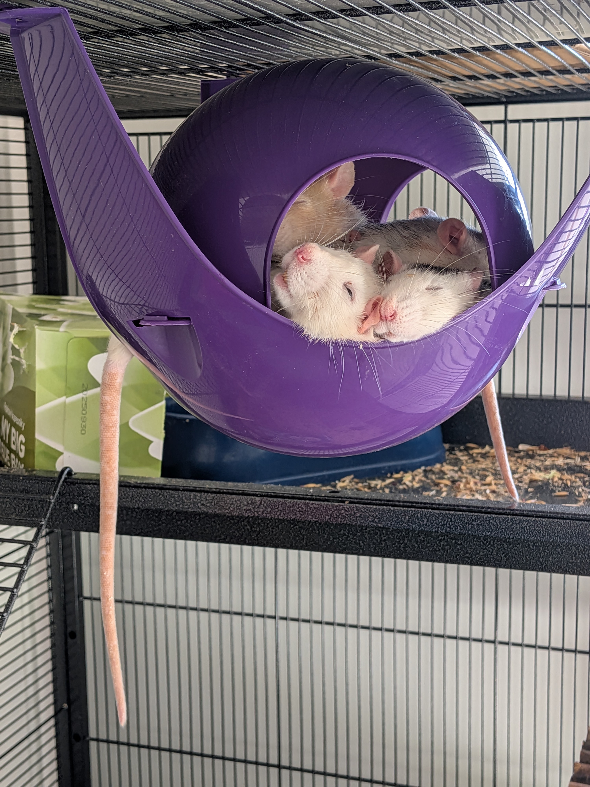 Morons are being lil babies bc I had to chuck em into a small cage and dissasemble their big one to move (it was back up in a few hours, tis too big to go through doors or in a car)