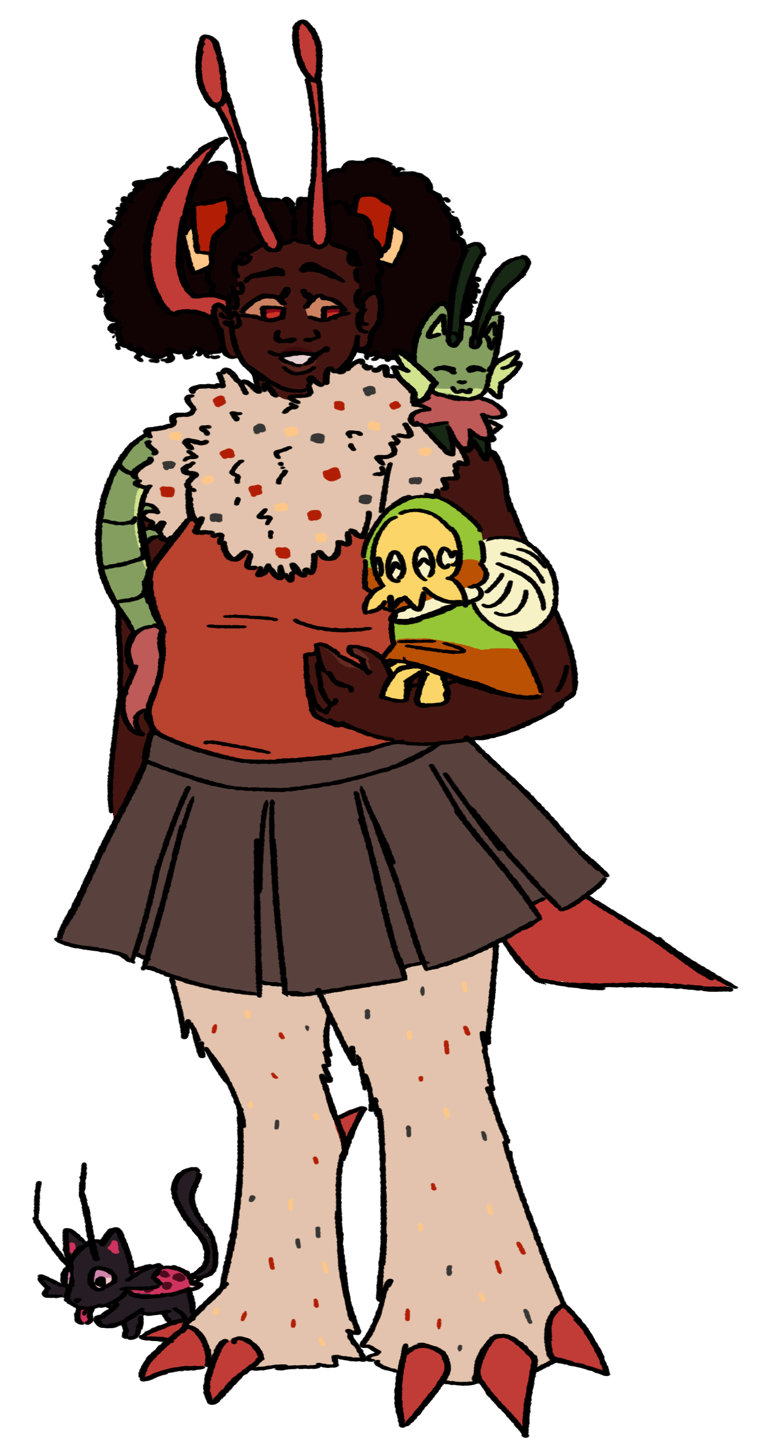 i think letty makes for a cute absol<3 tho i did have a very cute body sketched under their clothes that i had to cover up. i decided to replace the leavany part with absol instead of just doing absol cause i thought the fluffiness of spewpa would blend well with the fluffiness of absol